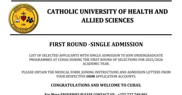 View the full list of names of those selected to join Diploma, Certificate, and Bachelor programmes at Mzumbe University for the academic year 2025/2026. Find the names, application numbers, and selected courses for the first round.