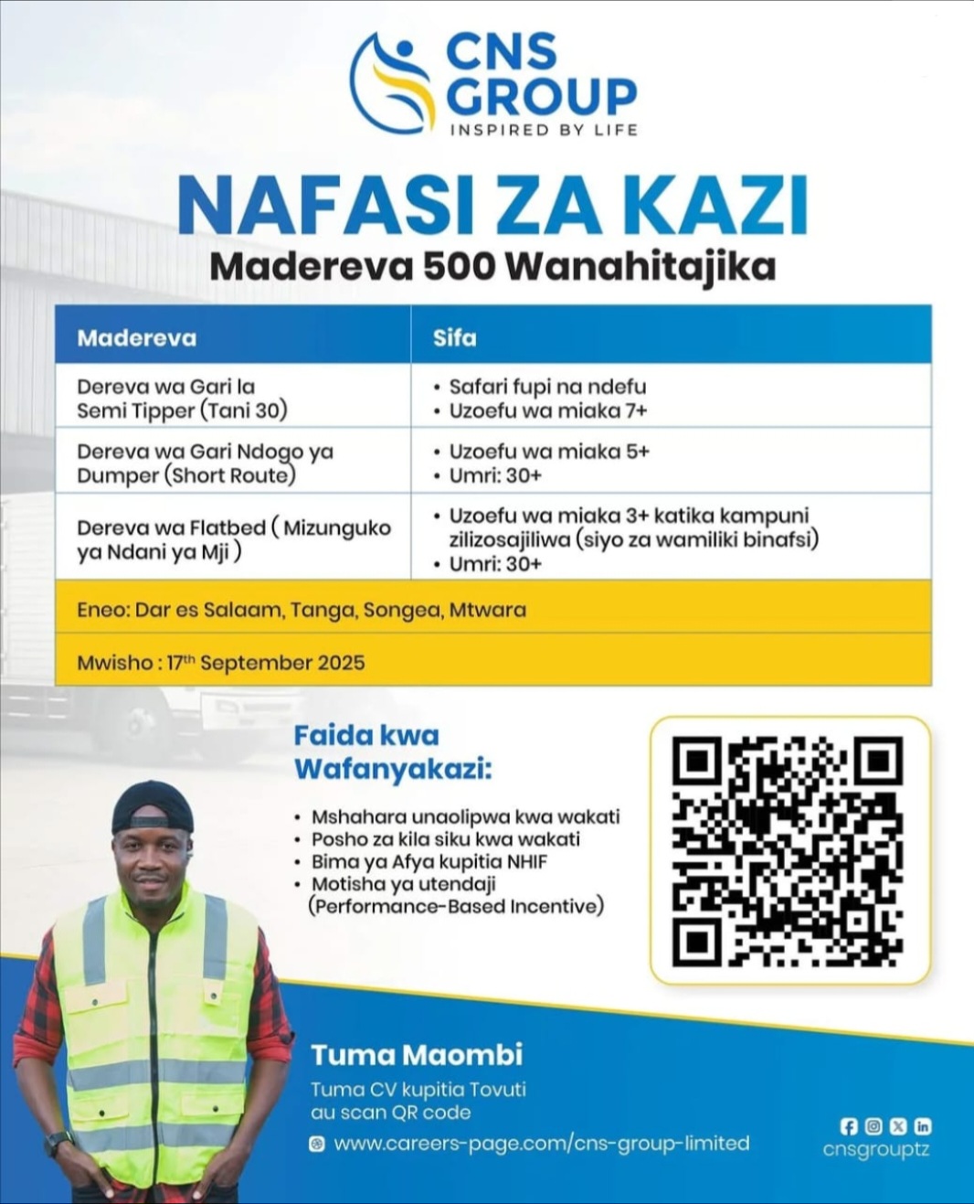 CNS GROUP imetangaza nafasi 500 za kazi za udereva.