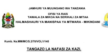 The Director of Mtwara Municipal Council invites qualified Tanzanian citizens to apply for twelve (12) job vacancies in this Council, following the approval granted by the President’s Office.