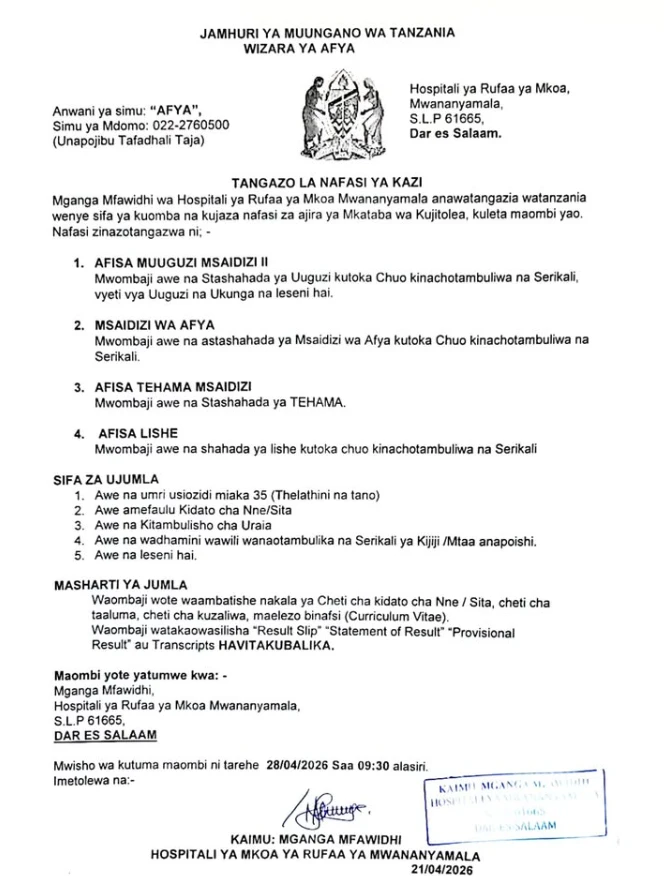 Job Vacancies at Mwananyamala Regional Referral Hospital - Ajirazote
