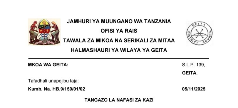 Nafasi za Kazi Wilaya ya Geita